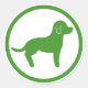 Silhouette de chien debout vert à l'intérieur d'un cercle vert signifiant que les animaux de compagnie sont les bienvenus.