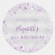 Sticker Rond Anniversaire argent violet parties scintillant nom