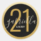 Sticker personnalisé Black and Gold pour une fête d'anniversaire moderne et élégante de 21e anniversaire avec Faux Gold Foil Circle Bordure. Ajoutez votre nom, votre date et modifiez l'âge pour toute fête d'anniversaire. Parfait pour coller sur l'emballage de la fête en faveur, en tant que sceaux d'enveloppe d'invitation, ou en tant que rappel Enregistrer la date.