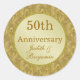 Sticker Rond Anniversaire d'or sur l'arrière - plan de paon d'o