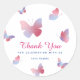 Cet autocollant de faveur de remerciement contient des papillons roses et bleus ainsi qu'un message de remerciement pour les invités qui font de la fête d'anniversaire une fête spéciale en célébrant avec vous.Personnalisez cet élégant autocollant de faveur d'anniversaire en ajoutant le nom de votre enfant.