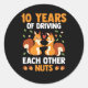 Design mariage Anniversaire célébrant une décennie ensemble, mettant en valeur les aspects humoristiques et décalés d'une relation durable.