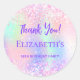 Un arrière - plan holographique en rose, violet et vert menthe. Décoré avec des faux étincelles. Texte mauve. Personnalisez et ajoutez un nom et un âge