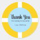 Cet autocollant de piscine à thème d'été personnalisé avec une bouée de sauvetage anneau de natation jaune avec bandes blanches sur la piscine personnalisée bleu arrière - plan et texte noir personnalisé "merci d'être venu à ma fête" et nom personnalisé est un bon choix pour la fête d'anniversaire de natation d'été piscine service. Customisez-le pour le rendre spécial.