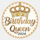 Sticker Rond Anniversaire Queen Gold Crown Party 2024 Filles An