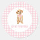 Anniversaire de l'extracteur en or chiot avec arc rose et plaid rose.