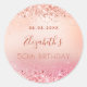 Sticker Rond Anniversaire rose or rose parties scintillant nom