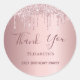 Un autocollant pour une fête d'anniversaire girly et glamour de 21e (ou tout âge). Un rose poussiéreux, un arrière - plan à l'aspect métallique rose avec des gouttes de parties scintillant imitant, la peinture goutte à goutte. Le texte : le Merci est écrit en or rose foncé avec un grand script de style à la main moderne.