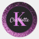 Sticker Rond Anniversaire violet rose parties scintillant monog