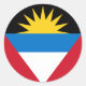 Le drapeau national d'Antigua-et-Barbuda a été adopté le 27 février 1967 pour marquer la réalisation de l'autonomie gouvernementale. Une compétition pour la conception du drapeau a eu lieu à l'occasion de laquelle plus de 600 personnes locales sont entrées. Le dessin gagnant a été présenté par l'artiste et sculpteur renommé Sir Reginald Samuel. Le dessin est un champ rouge avec un triangle isosceles inversé basé sur le bord supérieur du champ pointé vers le bord inférieur du champ portant le tricolore horizontal de noir, bleu clair (demi-largeur) et blanc avec le soleil levant centré sur le dessus de la bande noire. Le soleil levant symbolise l'aube d'une nouvelle ère. Les couleurs ont des significations différentes : le noir est pour l'ascendance africaine du peuple ; le bleu pour l'espoir ; et le rouge pour l'énergie ou la vie du peuple. Les colorants successifs de jaune, bleu et blanc (à partir du soleil couchant) représentent également le soleil, la mer et le sable. Le bleu représente également la mer des Caraïbes, et la forme en V est le symbole de la victoire.