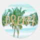 Sticker Rond Aqua Blue Mint White Palm Trees Parties scintillan