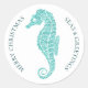 Sticker Rond Aqua Blue Parties scintillant Seahorse Coastal Chr