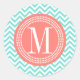 Sticker Rond Aqua Chevron Zigzag Personnalisé Monogramme