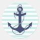 Sticker Rond Aqua nautique et rayures blanches Marine Ancre ble