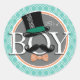 Sticker Rond Aqua Turquoise Retro Funny Boy Baby shower