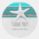 Sticker Rond Aqua & White Sparkle Starfish Plage Mariage Faveur