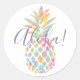 Sticker rond à ananas à aquarelle arc-en-ciel Tropical Personnalisé Classic. Magnifique ananas aquarelle avec une zone de texte personnalisée où vous pouvez la personnaliser pour en faire votre propre design.