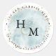 Sticker Rond Aquarelle bleu Dusty Brosse or Script Ampersand