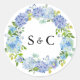 Sticker Rond Aquarelle Bleu Hydrangée Mariage de couronne Monog