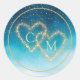 Sticker Rond Aquarelle Bleu Océan Vagues Avec Mariage Monogramm