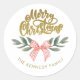 Sticker Rond Aquarelle Bow Script or Joyeux Noël