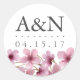 Sticker Rond Aquarelle Cherry Blossoms Mariage Monogramme