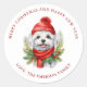 Une douce aquarelle illustre un adorable chien maltais portant un foulard rouge et un casquette sur un arrière - plan de verdure de noël.