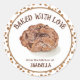 Daphsam a créé ce tableau unique d'un biscuit à chips au chocolat fait à la main sur un fond de design de biscuits à chips au chocolat. Personnalisé avec "Cuisine cuite avec amour de (votre nom)", cela ajoute une touche personnelle et magique à vos cadeaux de pâtisserie.