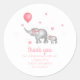 Merci à vos invités d'être venus à votre événement avec cet adorable autocollant de baby shower avec des coeurs roses et des éléphants d'aquarelle tenant un ballon rose.