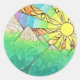 Sticker Rond Aquarelle et marqueur Abstraits Rainbow Sun Settin