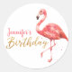 Sticker Rond Aquarelle Flamant rose rose Or Anniversaire |