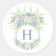 Sticker Rond Aquarelle Florale Bleu & Blanc Hydrangea Crest