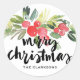Sticker Rond Aquarelle Holly Brush Calligraphie Joyeux Noël