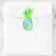Un autocollant de remerciement orné d'un ananas stylisé peint à l'aquarelle dans plusieurs tons de vert clair et de bleu avec un motif en treillis.