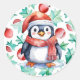 Sticker Rond Aquarelle mignonne Noël Pingouin vacances