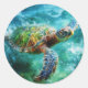 Sticker Rond Aquarelle Natation Tortue de mer