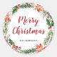 Ce joli autocollant de vacances présente une couronne de Noël aquarelle et une belle calligraphie. Le cadre fleuri hivernal comprend des poinsettias, des baies sèches et des branches de pin. Personnalisez-vous avec un accueil personnalisé et votre nom.