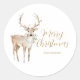 Autocollant rond classique de Noël pour cerfs aquarellés personnalisés. Facile à modifier le texte.