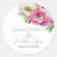 Ces autocollants d'étiquettes florales romantiques présentent un fond blanc simple avec des fleurs de renoncules roses et blanches à l'aquarelle. Un délicat bouquet de renoncules et de verdure est représenté en haut. Des exemples de noms de jeunes mariés et de date de mariage sont imprimés dans la partie supérieure. Vous pouvez personnaliser les autocollants pour inclure vos propres noms ou texte.