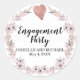 Jolie combinaison d'un coeur d'aquarelle rose neutre et de couronne fleurie. Romantique et moderne. Très branché et branché. La partie d'engagement est écrite dans une police de script, Les noms du couple engagé et la date du parti sont ci-dessous. Le coeur aquarelle est en haut de l'autocollant.