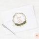 Sticker Rond Aquarelle rose Fleur couronne Enregistrer la date