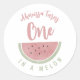 Sticker Rond Aquarelle rose mignonne un dans un Melon Anniversa