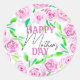 Cette autocollante personnalisable de la Fête des Mères est un délicieux mélange d’élégance et de chaleur, conçue pour transmettre des voeux sincères. L'autocollant rond est orné de roses roses roses magnifiquement peintes et de feuilles verts qui créent un décor luxuriant et fleuri. Le texte "HAPPY Mother’s DAY" est placé au centre. "Mother's" est écrit dans une police cursive élégante tandis que "HAPPY" et "DAY" sont en caractères gras et capitalisés. Le design général dégage une atmosphère fraîche et vibrante, ce qui en fait un ornement parfait pour des cadeaux ou des cartes à l'amour et l'appréciation de l'express en ce jour spécial.