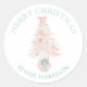 Sticker Rond Aquarelle rose sapin de Noël Grille millénaire