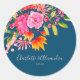 Sticker turquoise Rose et Orange Aquarelle Florale Personnalisé Mariage Classique Rond