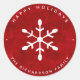 Ces autocollants de Noël tendance et élégants disent "joyeuses fêtes" sur un arrière - plan d'aquarelle rouge profond, avec un flocon de neige blanc festif.