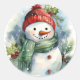 Snowman Aquarelle mignonne Sticker Classic Rond