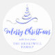 Sticker Rond Arbre à ruban bleu Joyeux Noël Script