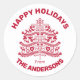 Petit sapin de Noël de style scandinave, avec des chevaux de dala rouges, des fleurs et des rennes en forme d'arbre de Noël. L'expression Happy Holidays de "votre nom de famille" est présentée autour de la conception de l'arbre de Noël, idéal pour sceller ces enveloppes de cartes de Noël, en utilisant comme étiquettes cadeaux, tant d'options. Le texte est entièrement personnalisable à partir de la page produit, pour changer les styles de police ou les couleurs, utilisez l'outil de conception pour un contrôle complet sur le processus de personnalisation.