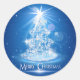 Sticker Rond Arbre de Noël et lumière sur arrière - plan bleu